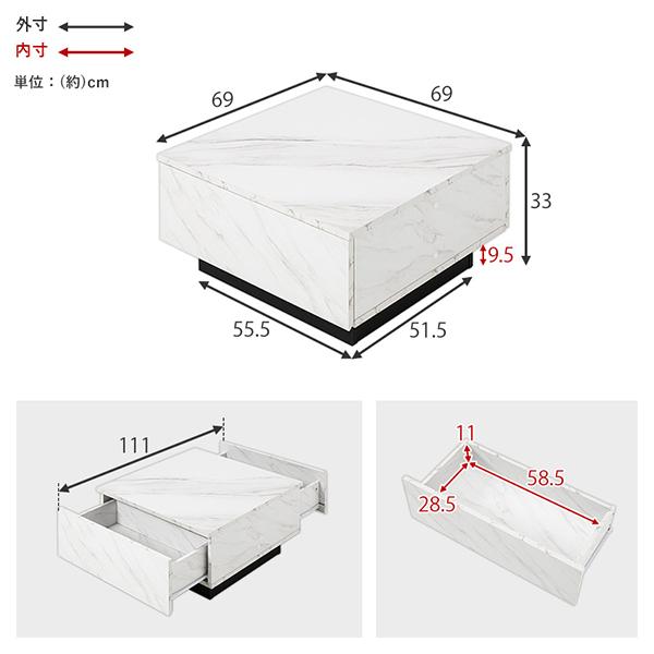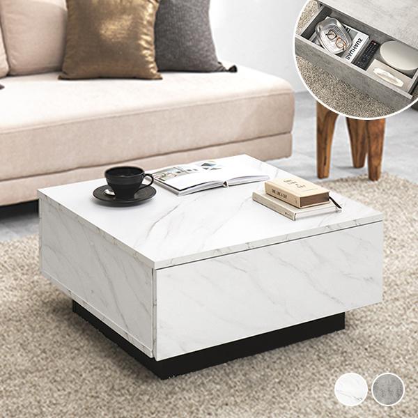 憧れの海外インテリアを叶える、ストーン調大容量収納テーブル(幅69cm)