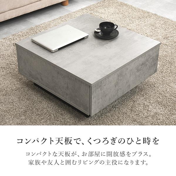 「お部屋をすっきり見せたいけれど、おしゃれな雰囲気も譲れない」そんな願いを叶えてくれるストーン調のデザインテーブル。リアルな質感を再現した天板が、お部屋をぐっと垢抜けた都会的な印象へと導きます。とにかく収納力を重視したい方におすすめ。ついつい出しっぱなしになりがちなリモコンや雑誌、充電コードから、かさばるブランケットまで、リビングの小物をまるごと引き出しの中へ。生活感をさっと隠せるので、急な来客時でも余裕を持って心地よく迎えられます。脚部には、洗練された印象を与える箱型のデザインを採用。しっかりと全体を支えてくれるので、ぐらつきにくく安定感があるのも嬉しいポイントです。