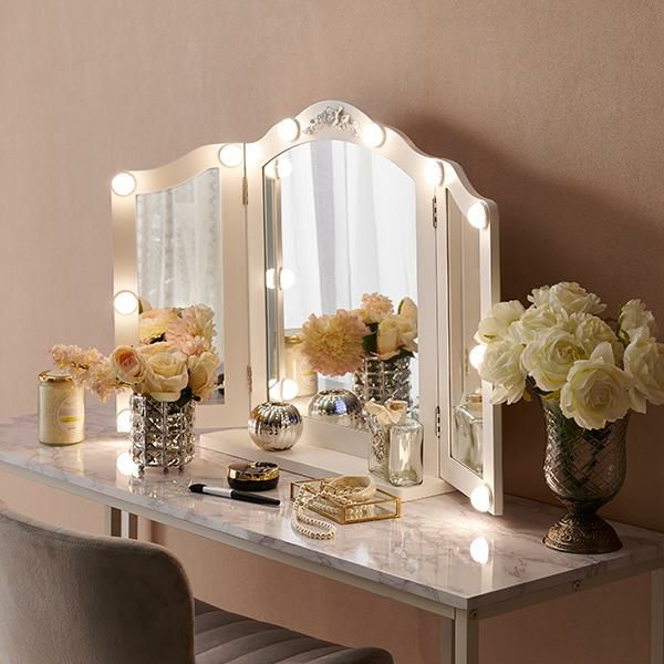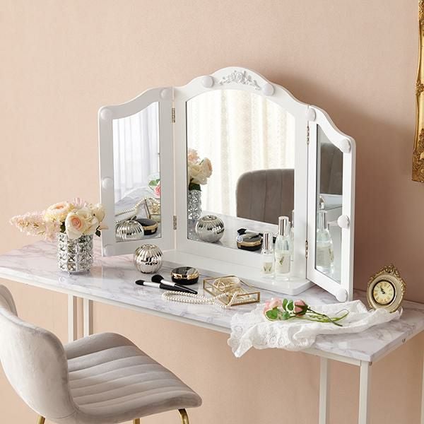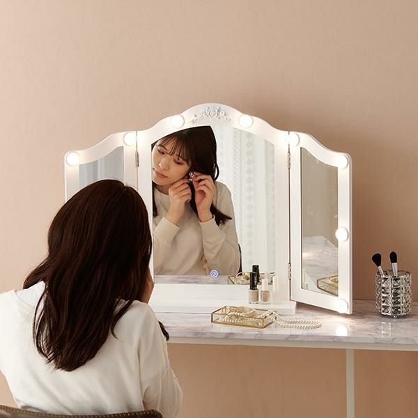 三面鏡はメイクやヘアセットの左右のバランスが同時にチェックできるのでワンランク上のスタイリングに!