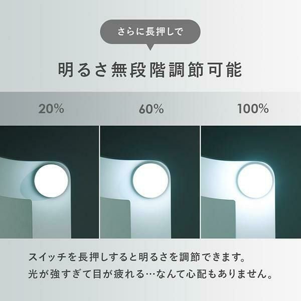 ライトの明るさは無段階調節が可能なので、お好みの明るさでメイク可能。