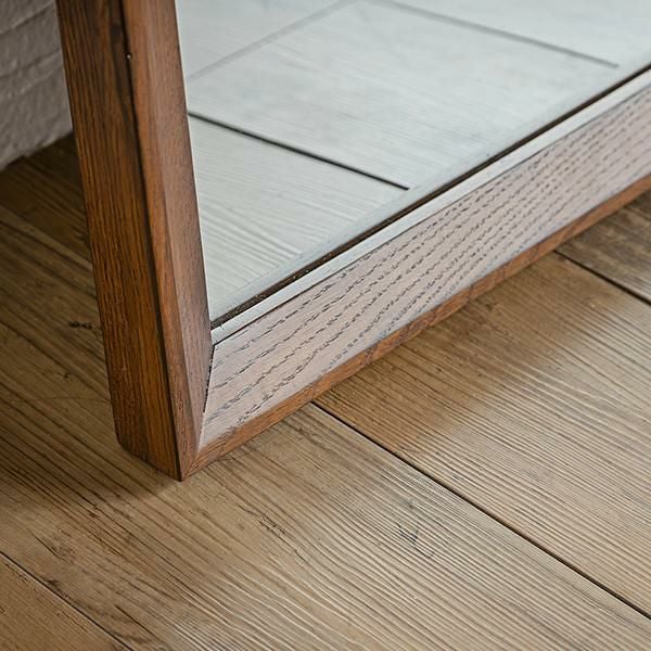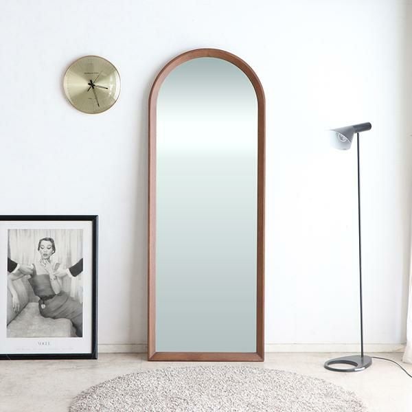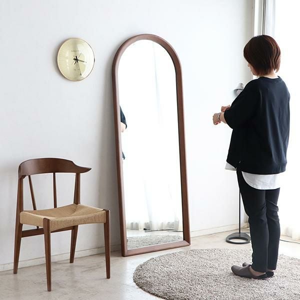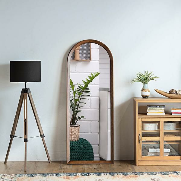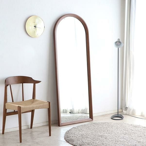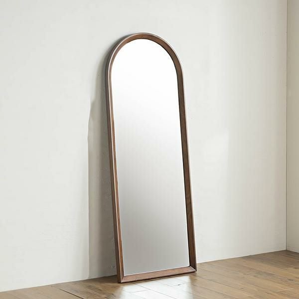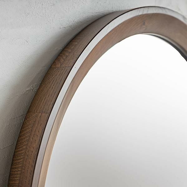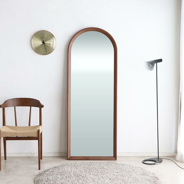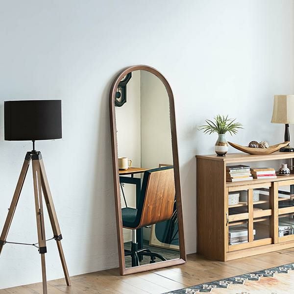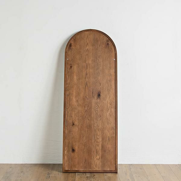 ブラウンカラーのオークと上部の大胆なアールが特徴的なスタイルミラー。洗練されたデザインと上質な風合いが空間に温かみと深みをもたらします。