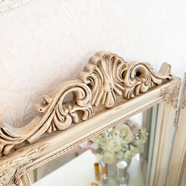 装飾が美しく、存在感抜群のクラシカルな三面ミラー