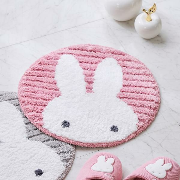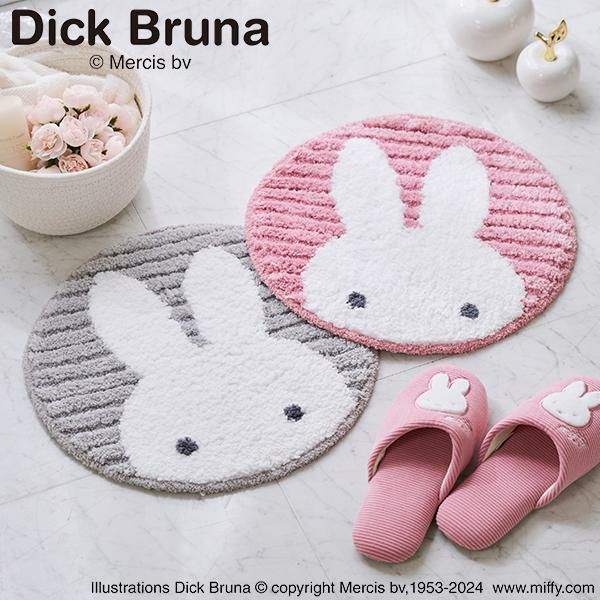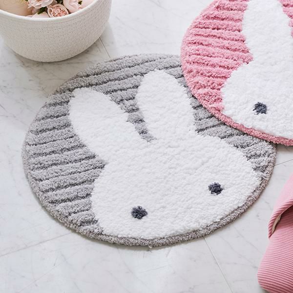 色の濃淡とハイ&ローパイルで表現したシンプルなストライプデザインに、ひょっこり顔を覗かせているミッフィーが可愛いマルチマット。ミッフィーのアップのお顔に癒されます。ポリエステルの優しい質感もポイント。