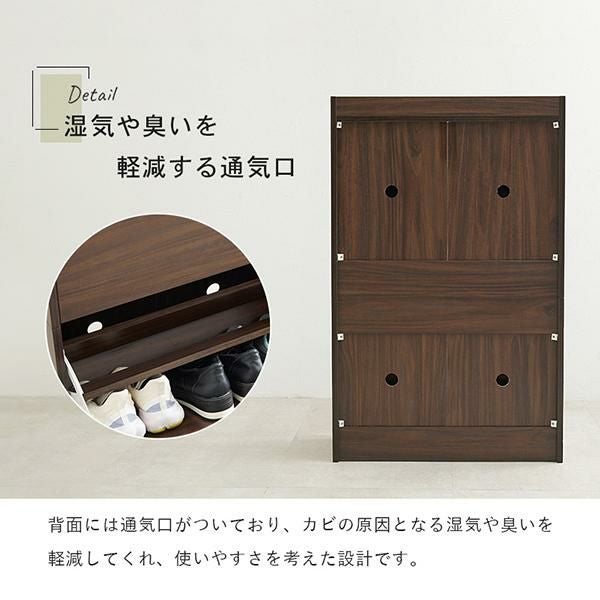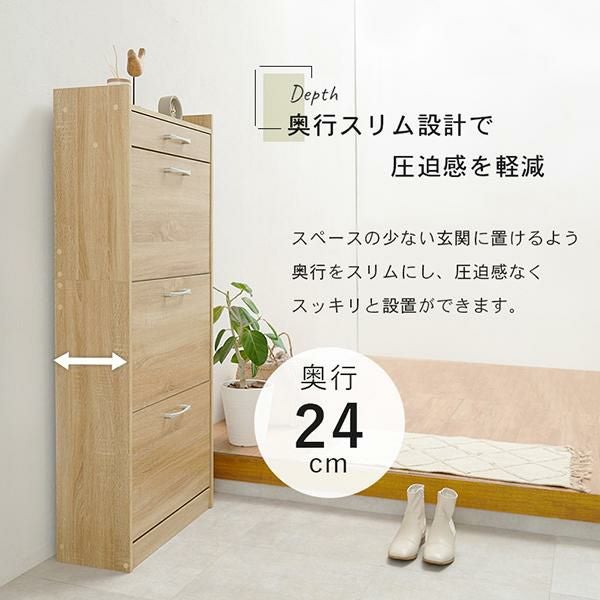 スペースの少ない玄関に置けるように奥行をスリムにし、圧迫感なくすっきりと収納できる仕様にこだわりました。