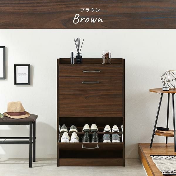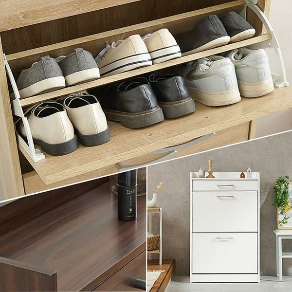 引出し付きで靴のお手入れ道具や玄関小物をしっかり収納!