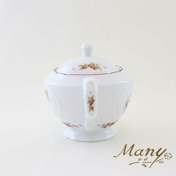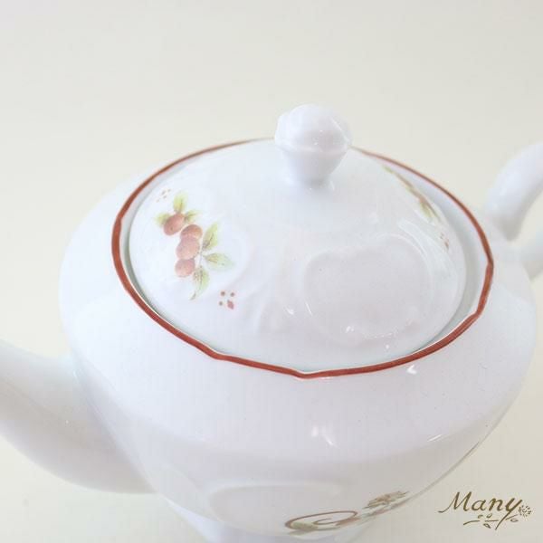 浮き彫り加工レースの縁取りと木の実がかわいい。容量は2,3杯分たっぷり入ります。(480ml)