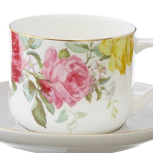 コーヒーに映える淡い配色のローズ柄コーヒーカップ。毎日のリラックスタイムをさらにグレードアップしてくれそうです。アンティーク調のゴールドの縁取りが美しい。