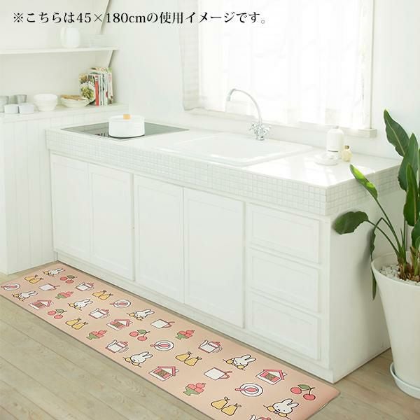 ミッフィーモチーフがあしらわれた45×120cmのロングマット♪程よい厚みとクッション性があり、ぷにっと触感&ソフトな踏み心地です。
