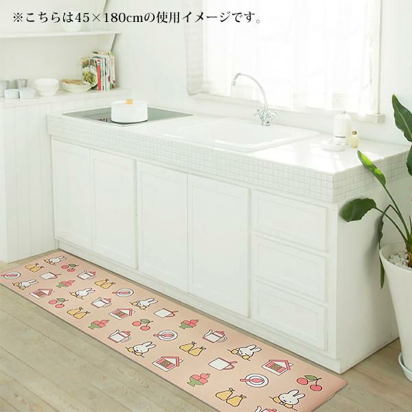 ミッフィーモチーフがあしらわれた45×240cmのロングマット♪程よい厚みとクッション性があり、ぷにっと触感&ソフトな踏み心地です。