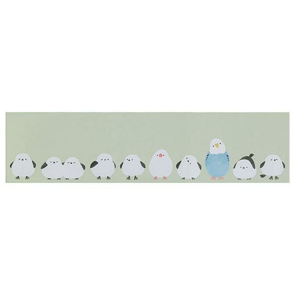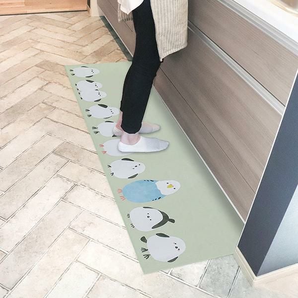 見ているだけで癒されるアニマルデザインのインテリアマット。一列に並ぶシマエナガの中に、こっそり違う鳥が紛れ込んでいる!?サイズによって違う小鳥が紛れ込んで何とも愛らしいデザインです。