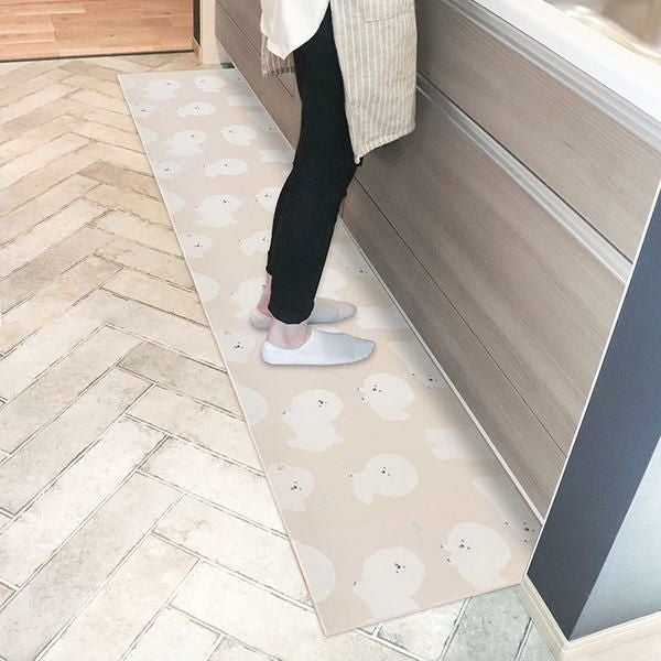 見ているだけで癒されるアニマルデザインのインテリアマット。つぶらな瞳と何とも言えない表情のビションフリーゼが愛らしいデザインです。