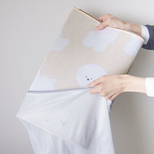 小さく折りたためるので、洗濯ネットに入れて洗濯機で丸洗いできます。また、フラットなので、引き出しが開閉しやすく、掃除機が掛けやすいのも嬉しいポイント♪