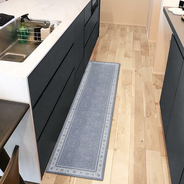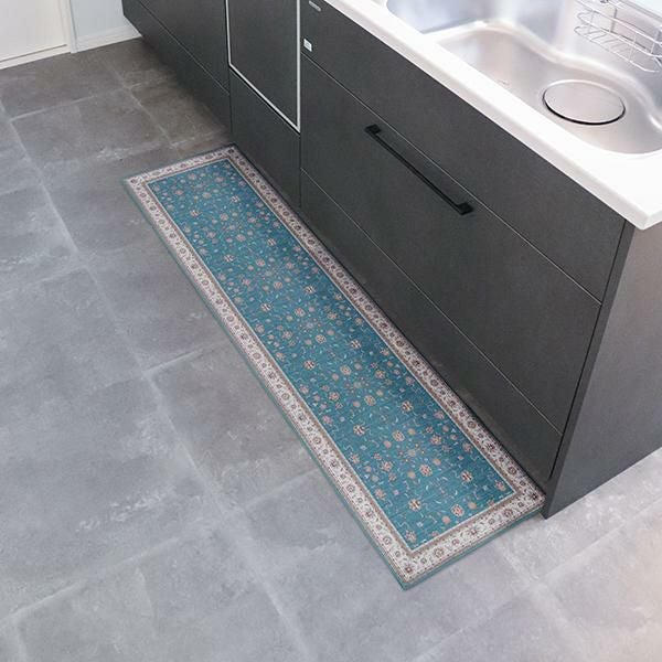 季節を問わず使えるデザインのインテリアマット。ペルシャ絨毯を思わせる落ち着いた柄は、繊細で上品なデザイン。