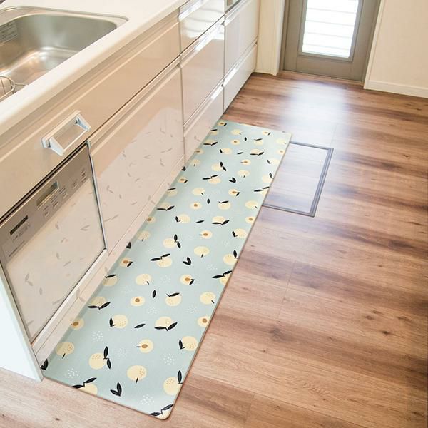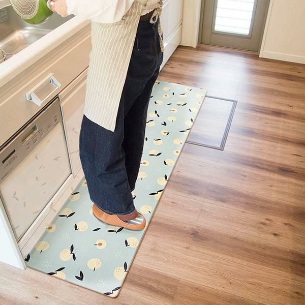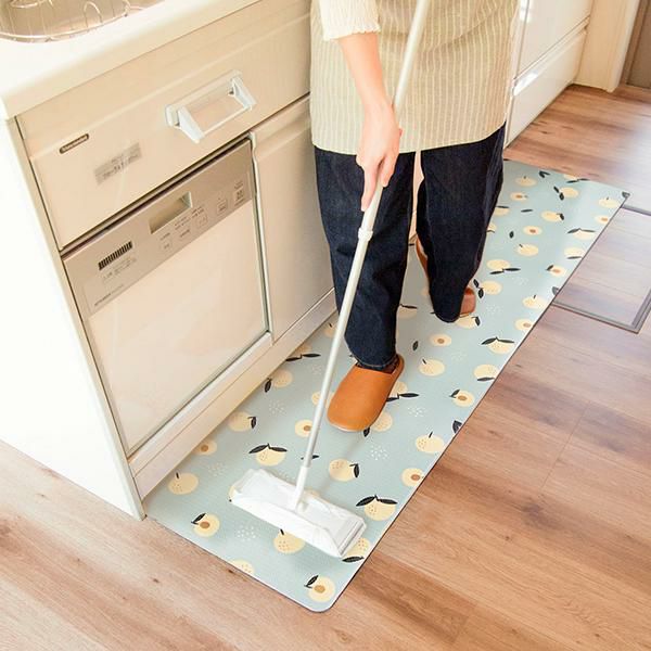 汚れた時はサッと拭くだけ簡単お手入れ♪ 足元を優しく彩るキッチンマット
