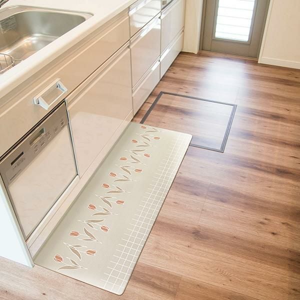 汚れた時はサッと拭くだけ簡単お手入れ♪ 足元を優しく彩るキッチンマット