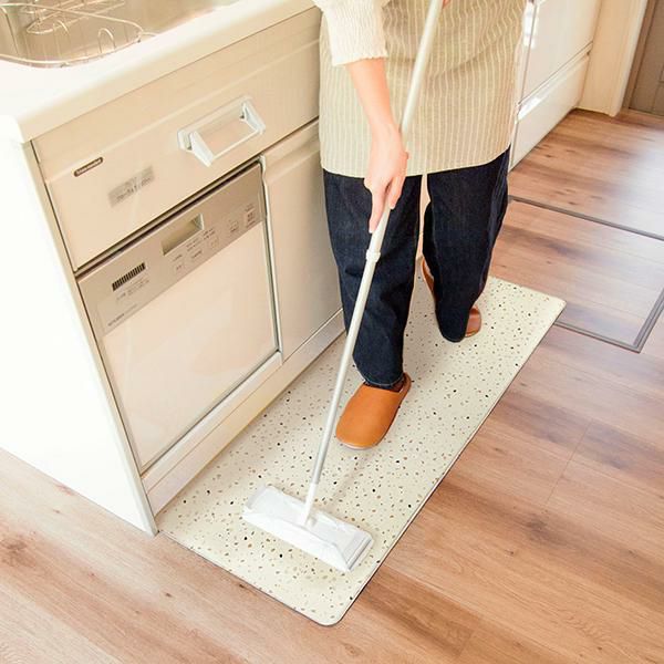 汚れた時はサッと拭くだけ簡単お手入れ♪ 足元を優しく彩るキッチンマット