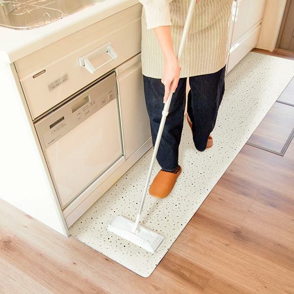 汚れた時はサッと拭くだけ簡単お手入れ♪ 足元を優しく彩るキッチンマット