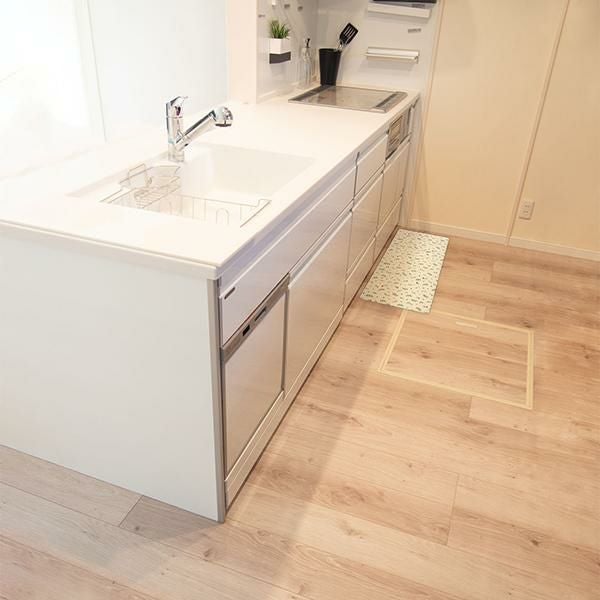厚み3.5mmのぷにぷにした足触りで表面には撥水加工が施されているので、もしもの時にも安心。フラットなので、引き出しが開閉しゃすく、掃除機が掛けやすいのも嬉しいポイント♪また裏面には2箇所折り目が付いており、使わないときは折りたたんで収納できます。