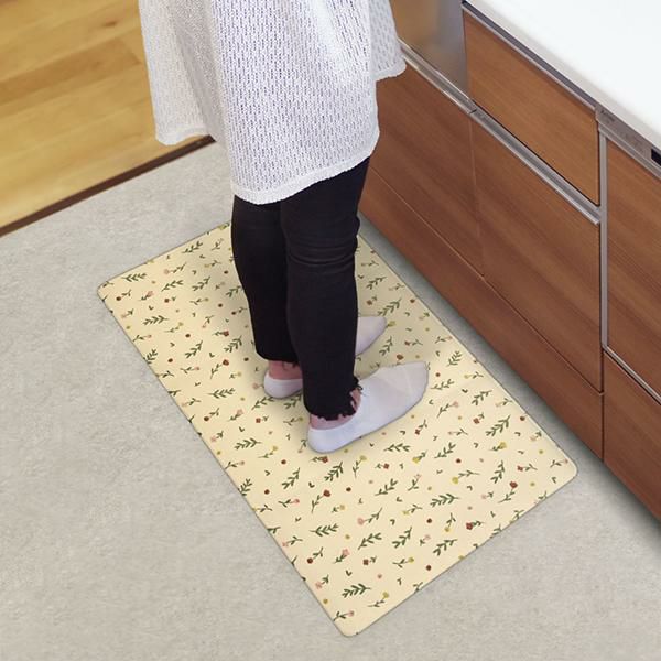コンロやシンクなど調理時に汚れやすいスペースをしっかりガード!油汚れもサッと拭き取れて、マットに汚れのあとが残りにくいキッチンマットです。
