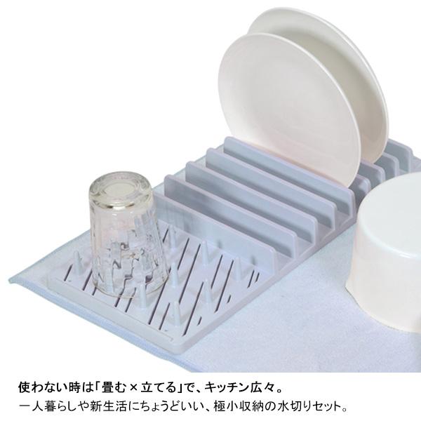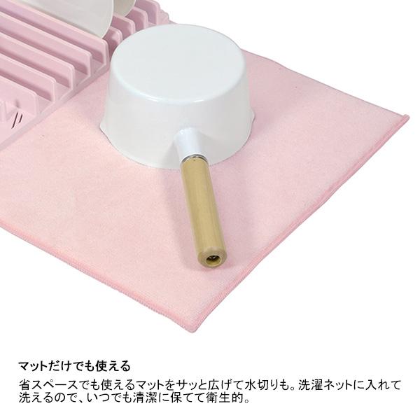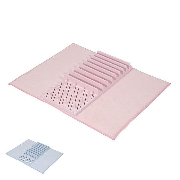 お皿を立てられるトレーと、大物も置けるマットの万能セット。 用途に合わせて別々でも使え、マットはネットに入れて洗濯機で洗えるのでお手入れも簡単です。 使用後は折りたたんでスリムに収納でき、調理スペースを邪魔しません。