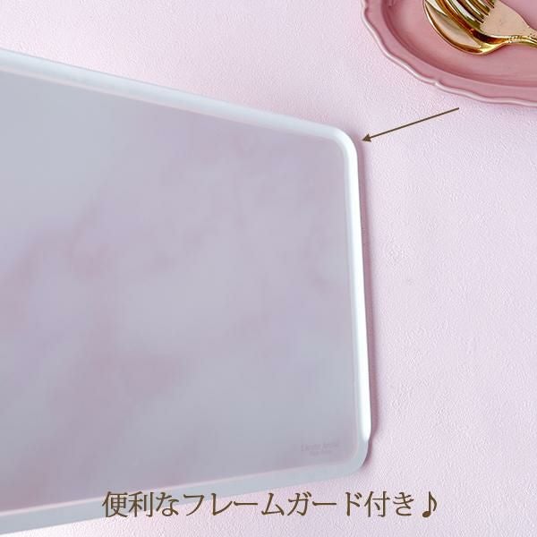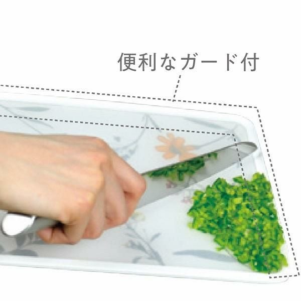 食材をこぼさず移動できるガード付。滑りにくいストッパー付。両面使用可。