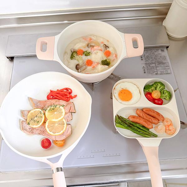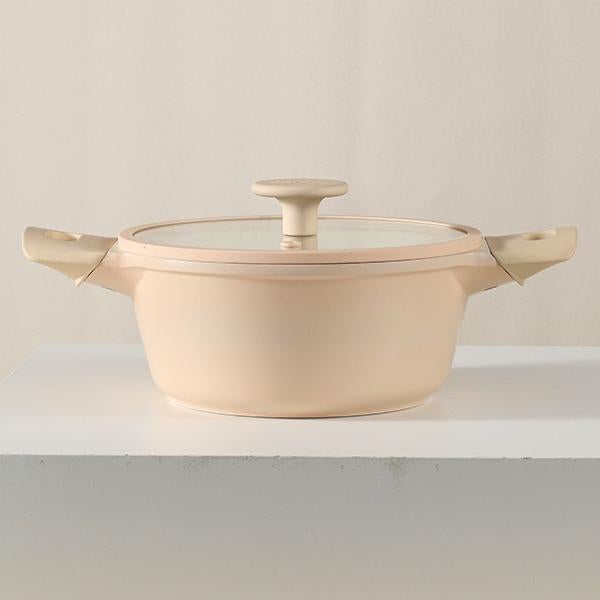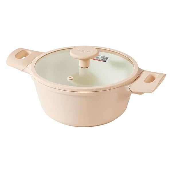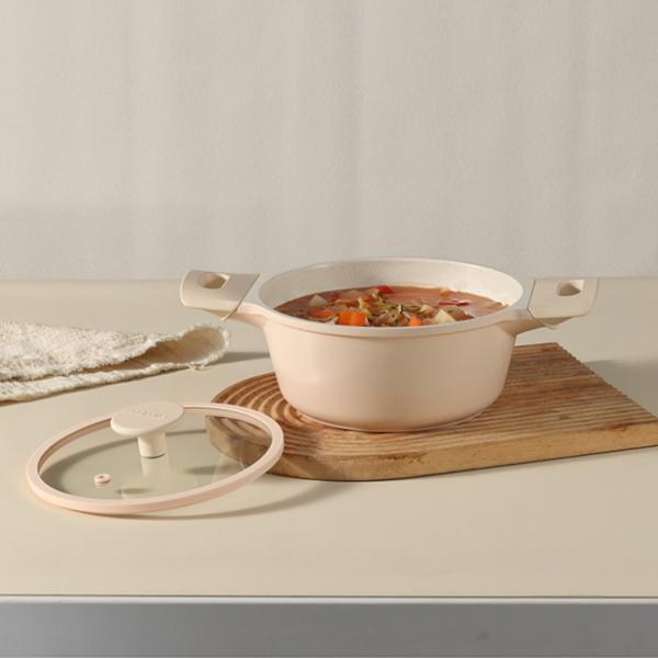 本体は丈夫なアルミダイキャスト製で耐久性に優れています。食材に火が通り易く、カレー等の料理を美味しく仕上げます。保温性も抜群です。内面はマーブルコーティングでこびり付きにくいです。ガラスフタはフタを開けずに料理のでき具合を確認できて便利。適度に蒸気を逃す蒸気穴付きで吹きこぼれの心配がありません。汚れは軽く拭くだけでスルッと落ちるため、お手入れが簡単ラクラク。