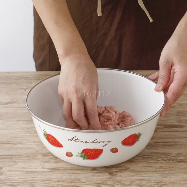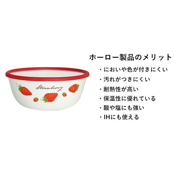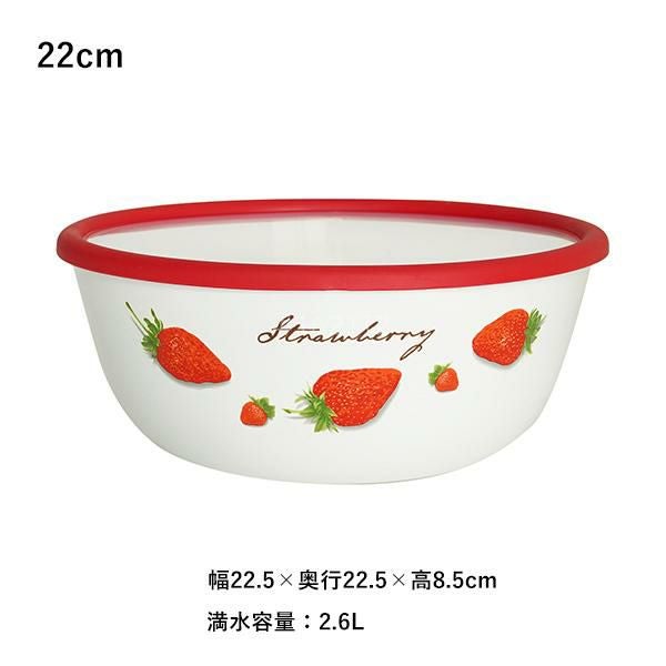 レトロ感のあるいちご柄がかわいい!様々な食材のストックに使える蓋付ホーローボール22cm
