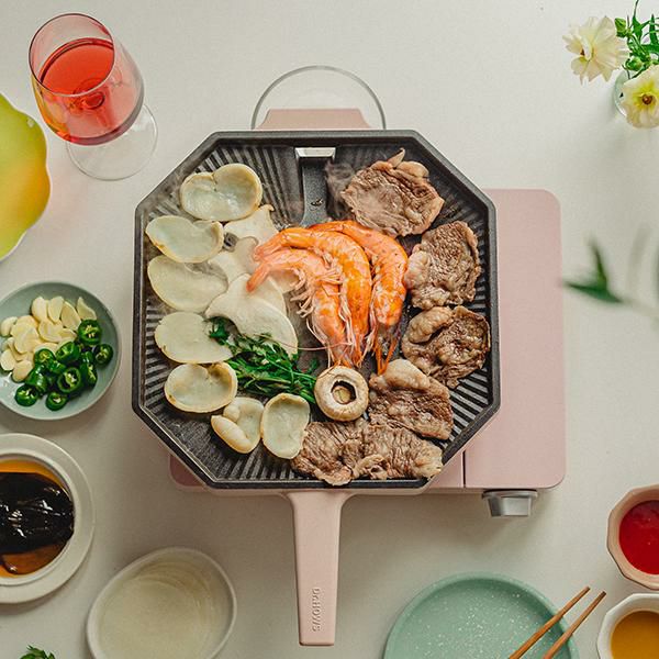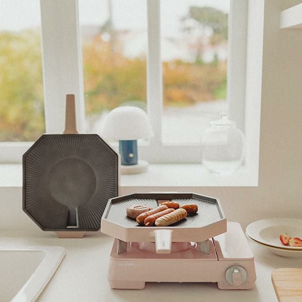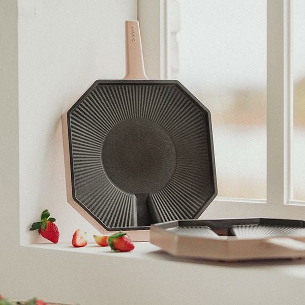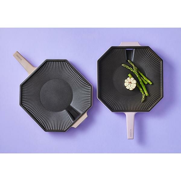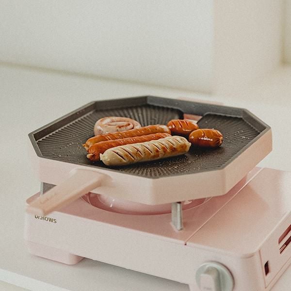 韓国の寺院を連想させる8角形が印象的なDr.HOWSならでのはの感性を盛り込んだグリルパン。誰でも本場韓国の味を再現できる傾斜・波型の設計と、余分な脂を落とす穴付き。かわいくヘルシーに料理できます。