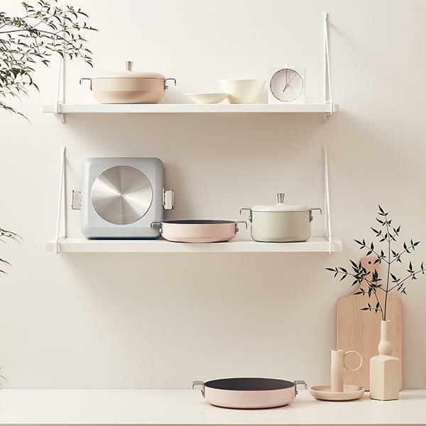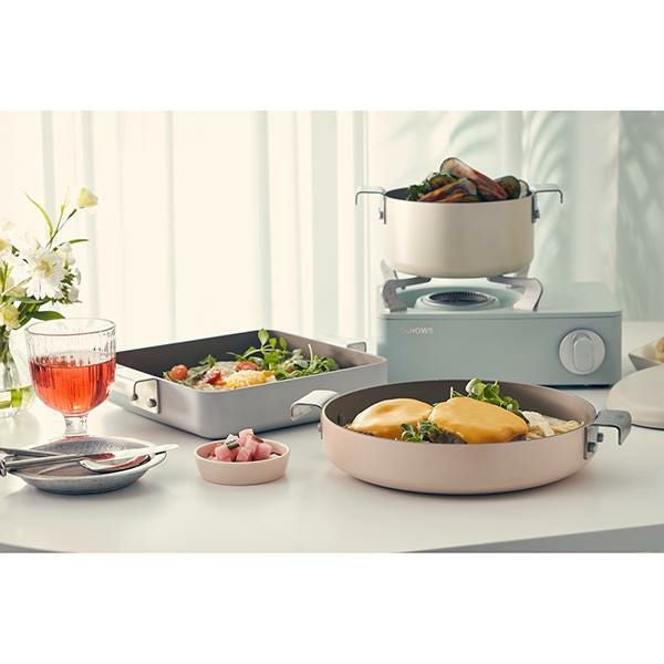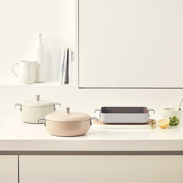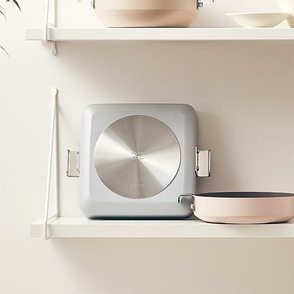 なめらかな質感と穏やかな色合い。陶磁器からインスピレーションを受けて生み出された、洗練されたデザインのプレーティングシリーズ。両持ち手付きのコロンとした四角形が可愛い。「かわいい」のすべて詰め込んだような曲線を使ったデザインで、お皿やボウルのようにお使いいただけます。