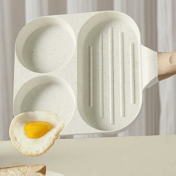 アイボリーにナチュラルカラーの持ち手が優しい印象の仕切り付きフライパン。熱変形に強く丈夫なアルミダイキャスト製で、お手入れしやすい一体成型です。軽量仕様と握りやすいハンドルが嬉しい♪3品同時に調理できる仕切りタイプ!IHもガス火も対応可能です。