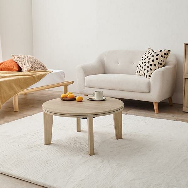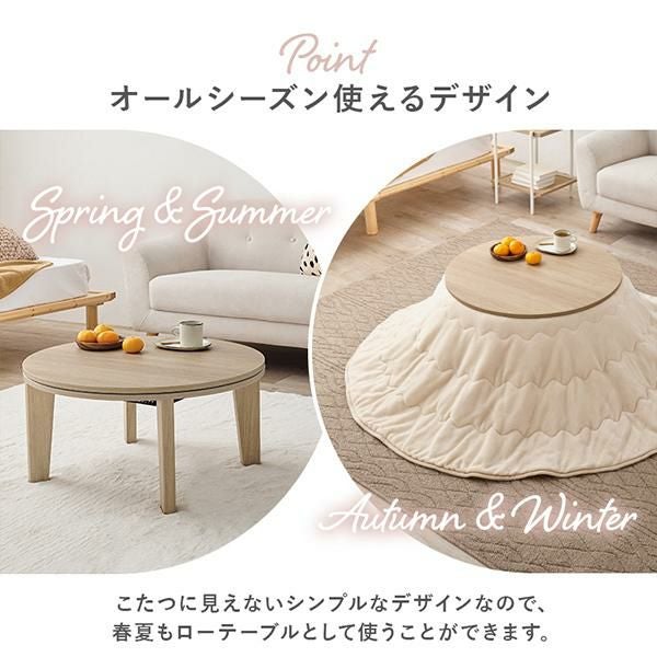 お部屋に柔らかい印象を与える丸型天板に、シュッとした脚のこたつテーブル。ワンルームにも置きやすい直径68cmの円形で、一人暮らしにピッタリのサイズ感です。コンパクトだけど、作業にも適した程よい天板サイズでなので温まりながら、デスクワークや読書ができます♪こたつに見えないシンプルなデザインなのでシーズンオフの春夏もローテーブルとして使えます!