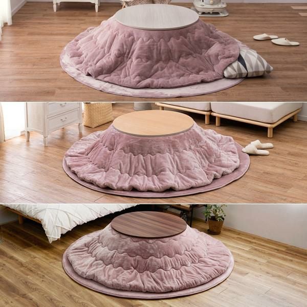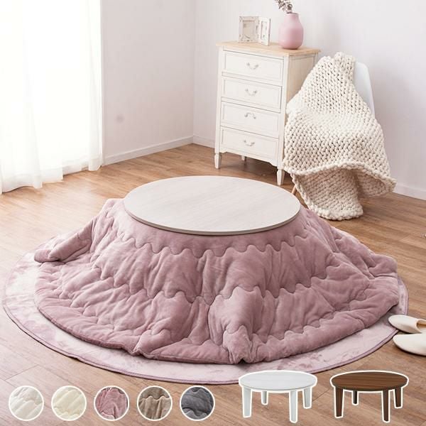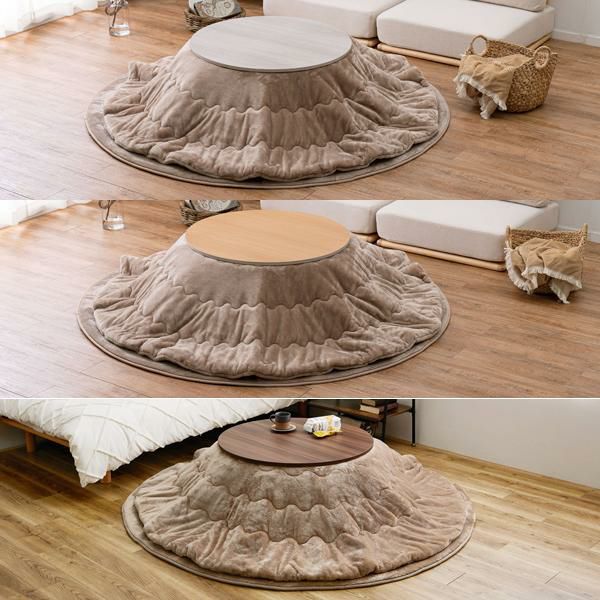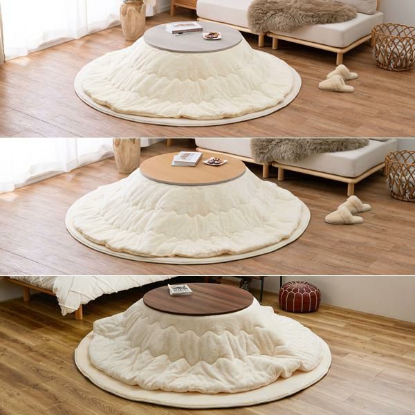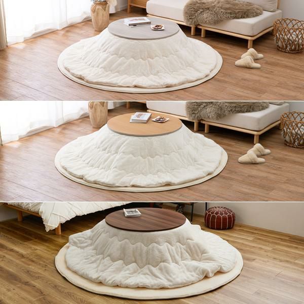 リバーシブルの円形テーブルとふわふわメレンゲタッチこたつ布団の2点セット♪