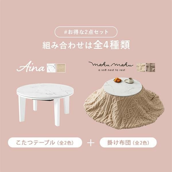 大理石調テーブルとセーター風デザインのこたつ布団をあわせた可愛い2点セット♪