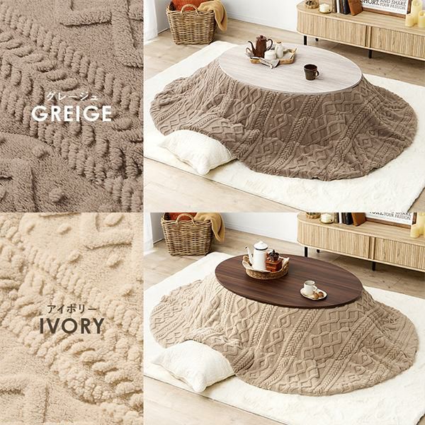 リバーシブルのだ円形テーブルとセーター風デザインのこたつ布団を合わせた2点セット♪