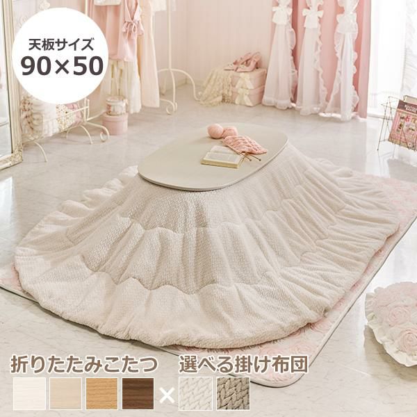コンパクトな折れ脚こたつテーブルと立体感のあるニット柄こたつ布団の2点セット♪