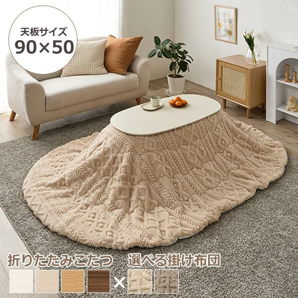 コンパクトな折れ脚こたつテーブルとセーター風デザインのこたつ布団を合わせた2点セット♪