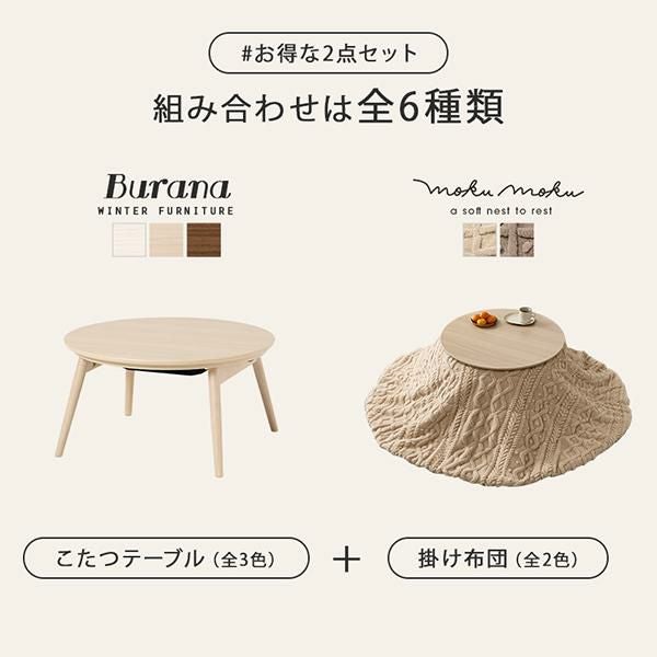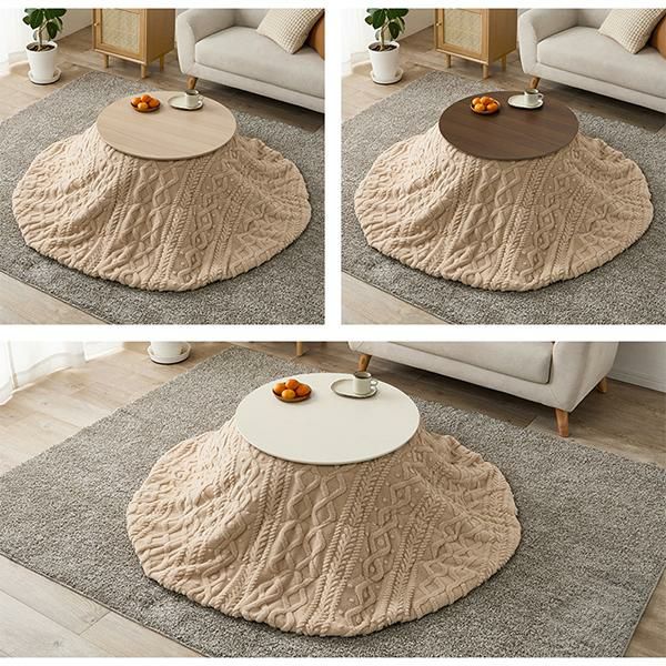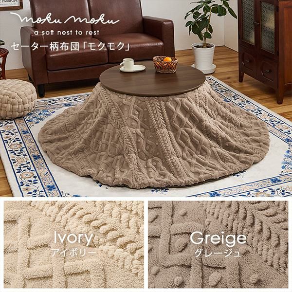 まるいフォルムがかわいいこたつテーブルとセーター風デザインのこたつ布団を合わせた2点セット♪
