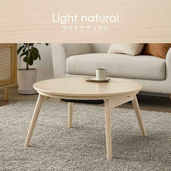 まるくてかわいいフォルムが特徴の丸型こたつで、ふんわりとした柔らかい印象のお部屋に。ワンルームにも置きやすい直径68cmは、コンパクトながら作業にも適した程よい天板サイズ。温まりながら、デスクワークや読書ができます。