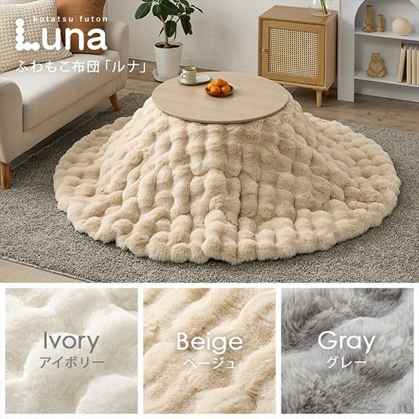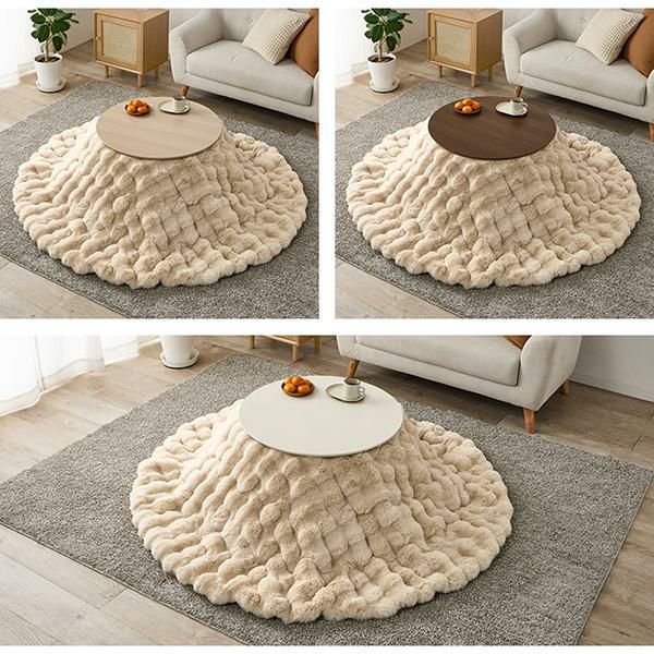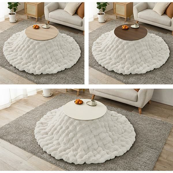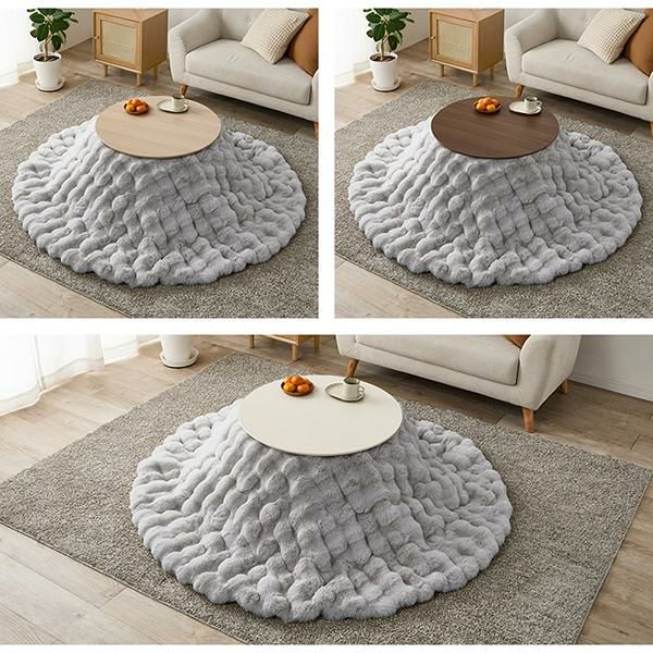 まるいフォルムがかわいいこたつテーブルとふわふわポコポコこたつ布団の2点セット♪