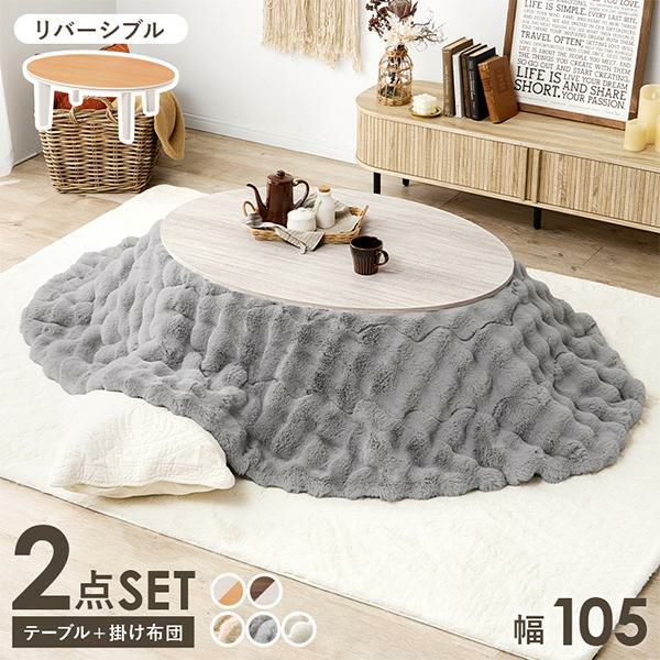 リバーシブルのだ円形テーブルとふわふわポコポコこたつ布団の2点セット♪