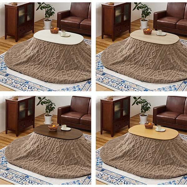 【直送】こたつ2点セット(楕円形)/カルミナテーブル&ニット風布団