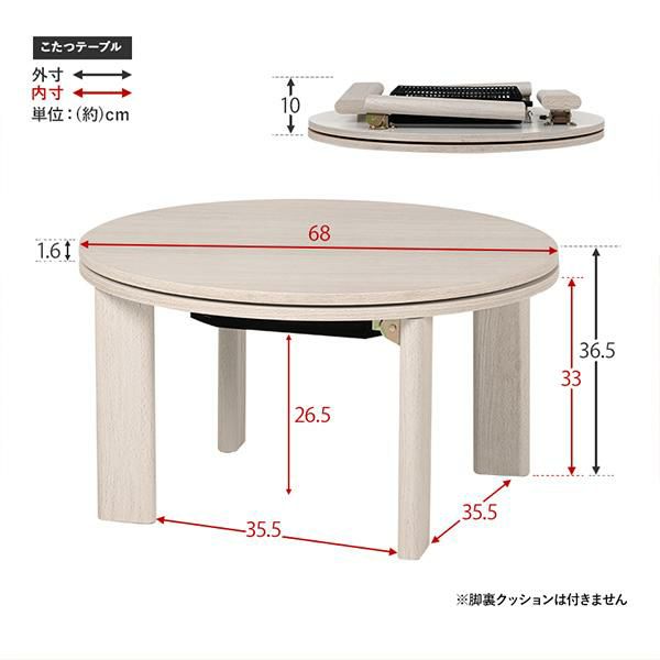 【直送】折れ脚こたつテーブル/モネ(円形・68cm)