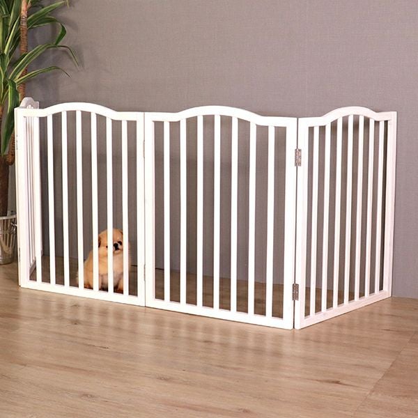 北欧パイン材に、安全・安心な天然オイルを使用した4つ折れペットフェンス。