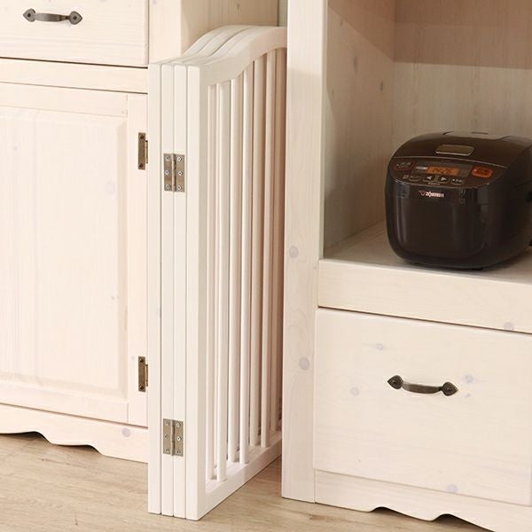 どんなテイストのお部屋にも合わせやすい、ホワイト色とブラウン色の2色展開をご用意しました。組立不要で広げるだけで届いてすぐに使えます。折り畳むと9.5cm幅で収納にも場所を取りません。高さが75cmあるので、愛犬や愛猫が飛び越えることもなく安心できそう。