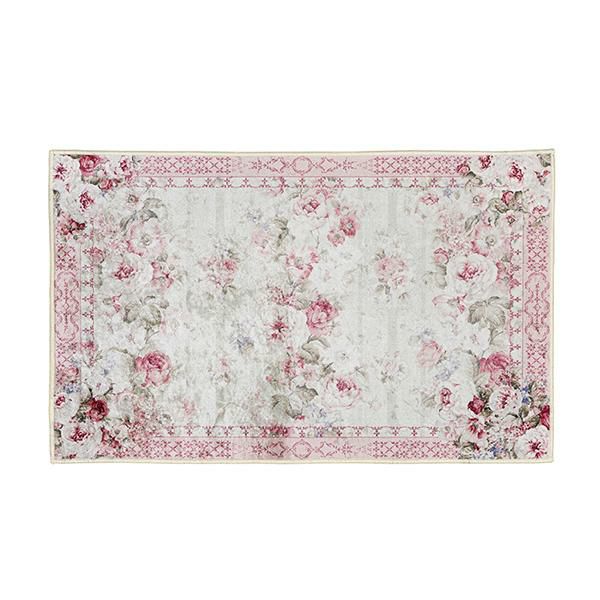 繊細にデザインされたローズとレースのプリント模様が美しい、マルチマット。少しかすれたようなタッチは儚げな印象で主張し過ぎず、玄関やベッドサイドにアクセントマットとして、上品にお部屋を彩ります。