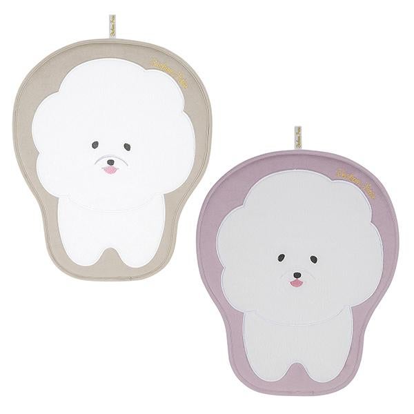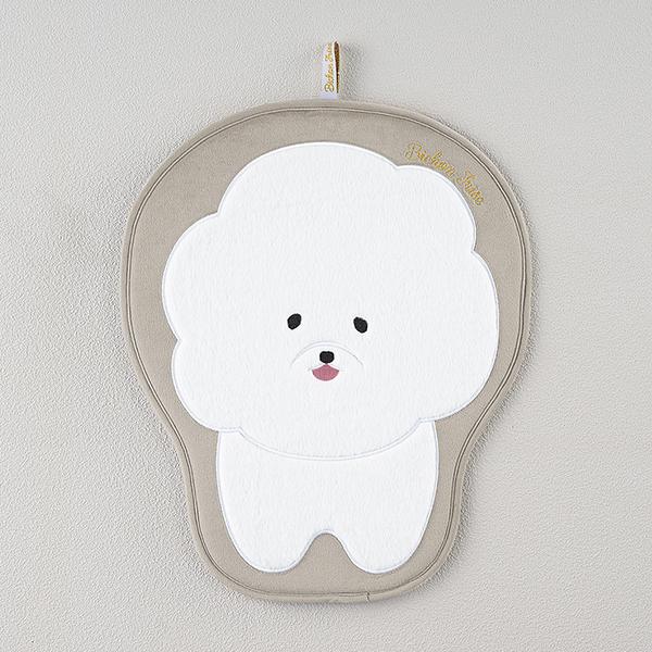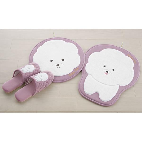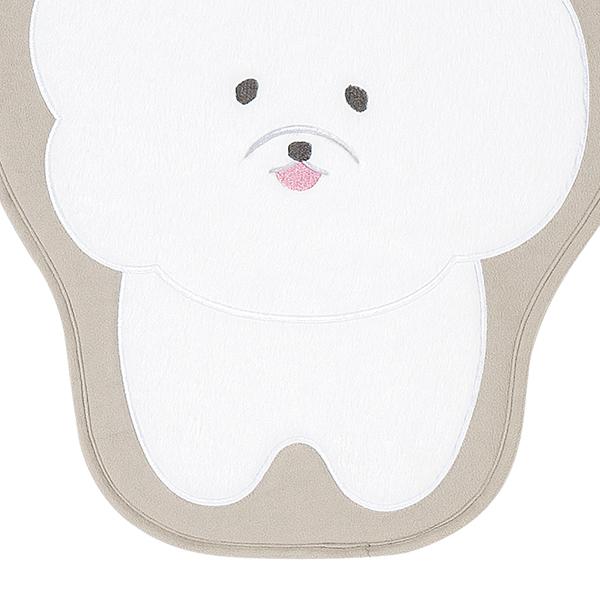 お部屋のドアを開けるたび、ビションフリーゼがお出迎え。ポリエステル生地に大胆なビッグサイズのアップリケ刺繍を施した、遊び心あふれるマット。思わず触れたくなるファー生地の質感でビションフリーゼならではの「ふわふわ感」を贅沢に表現しました。玄関やベッドサイドなど、お気に入りの場所に敷くだけで、空間がぱっと華やかに♪中材には厚みのあるウレタンを使用しているため、へたりにくく、ふっくらとした可愛い姿であなたを待っていてくれます。