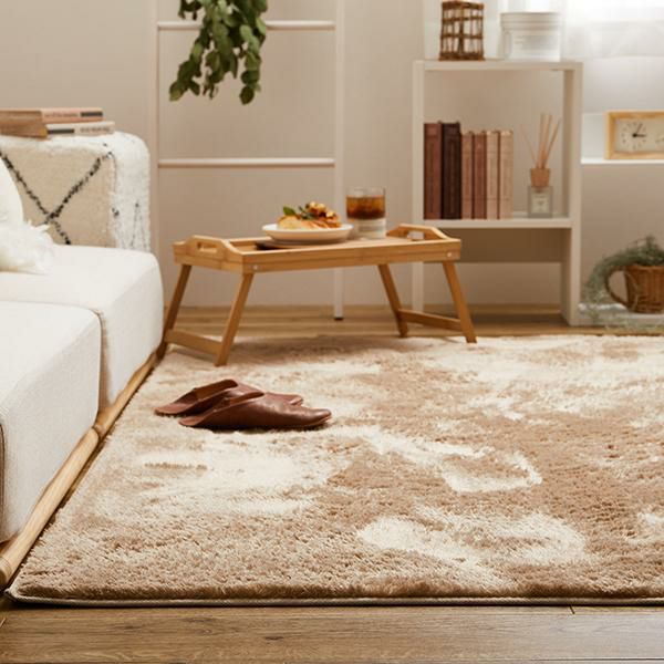 柔らかな色味がかわいい、洗えるシャギーラグ♪