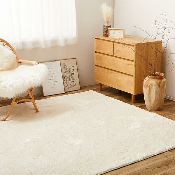 フサフサした毛並みは、毛流れや光の当たり方によって色の見え方が変わり、敷くだけでオシャレ度UP♪