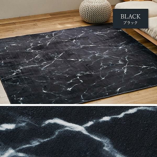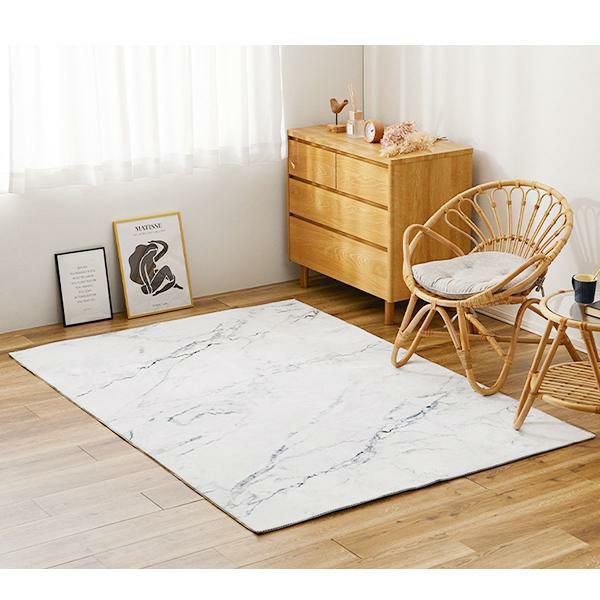 大理石柄プリントで、海外風インテリアやホワイトコーデにもあうシックなデザイン。ソフトフランネルのなめらかな肌触りは、思わず素肌で触れたくなるようなタッチ感です。短毛でやわらかく、コンパクトに折りたためるから収納にも困らず、お手入れも簡単。汚れても洗えるからいつも清潔にお使いいただけます。裏面には滑り止め付きでフローリングの上でもズレにくく安心です。寒い季節もあたたかく過ごせるよう、ホットカーペット・床暖房に対応しています。