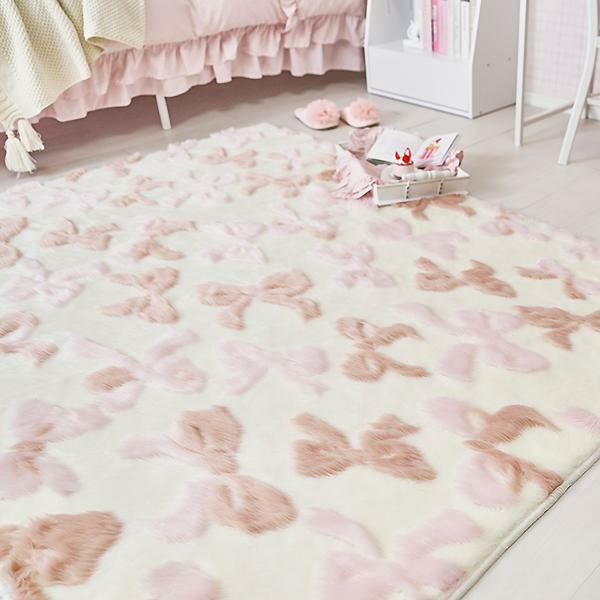 ファーを思わせるボリューミーな毛足はふんわりふわふわの踏み心地で、ずっと触っていたくなるような気持ちの良さです。またホットカーペットの上にもお使いいただけます。ふわふわのリボンでロマンティックフェミニンなお部屋に♪